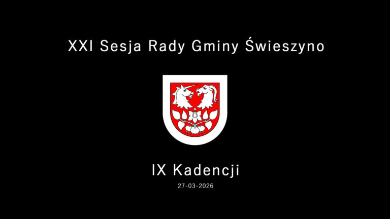 XXI sesji Rady Gminy Świeszyno w dniu 27 marzec 2026 r. o godz. 10:00 w Centrum Kultury i Bibliotece Publicznej w Świeszynie